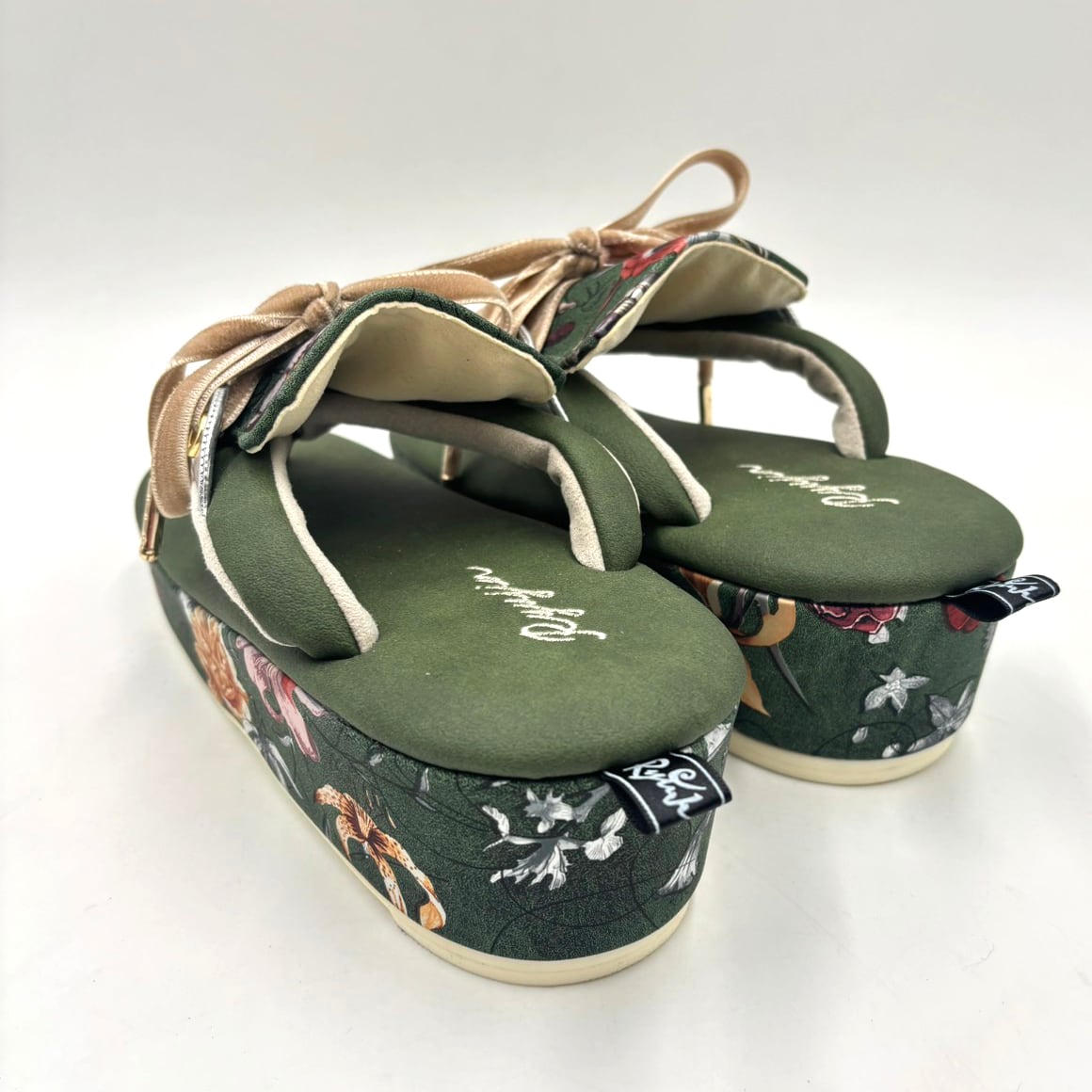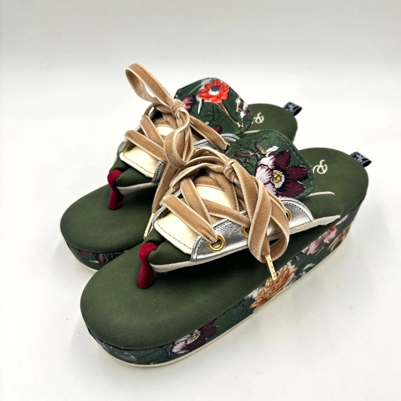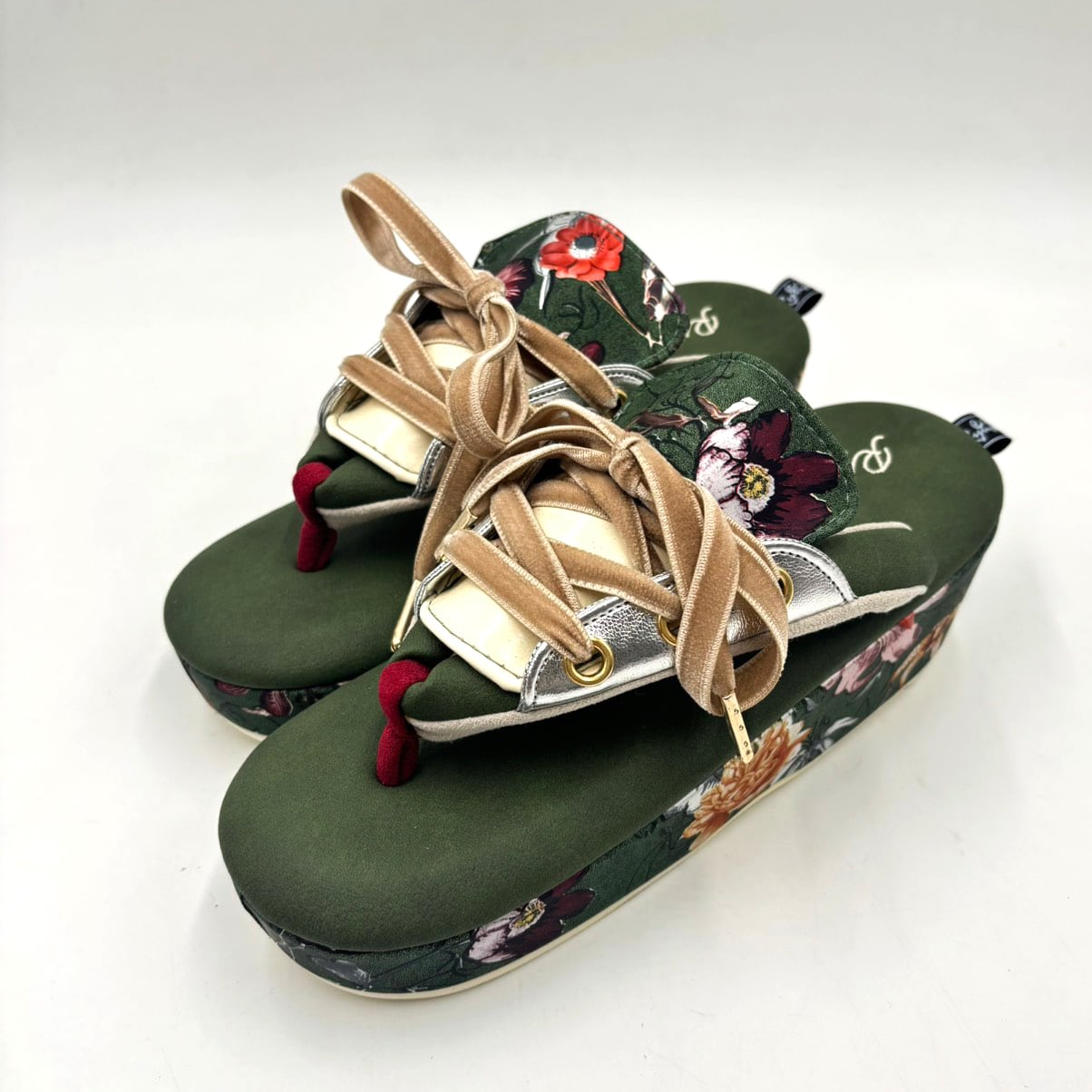 花柄の台にスニーカー風デザインを組み合わせた「流神 -Ryujin-」のスニーカー草履。