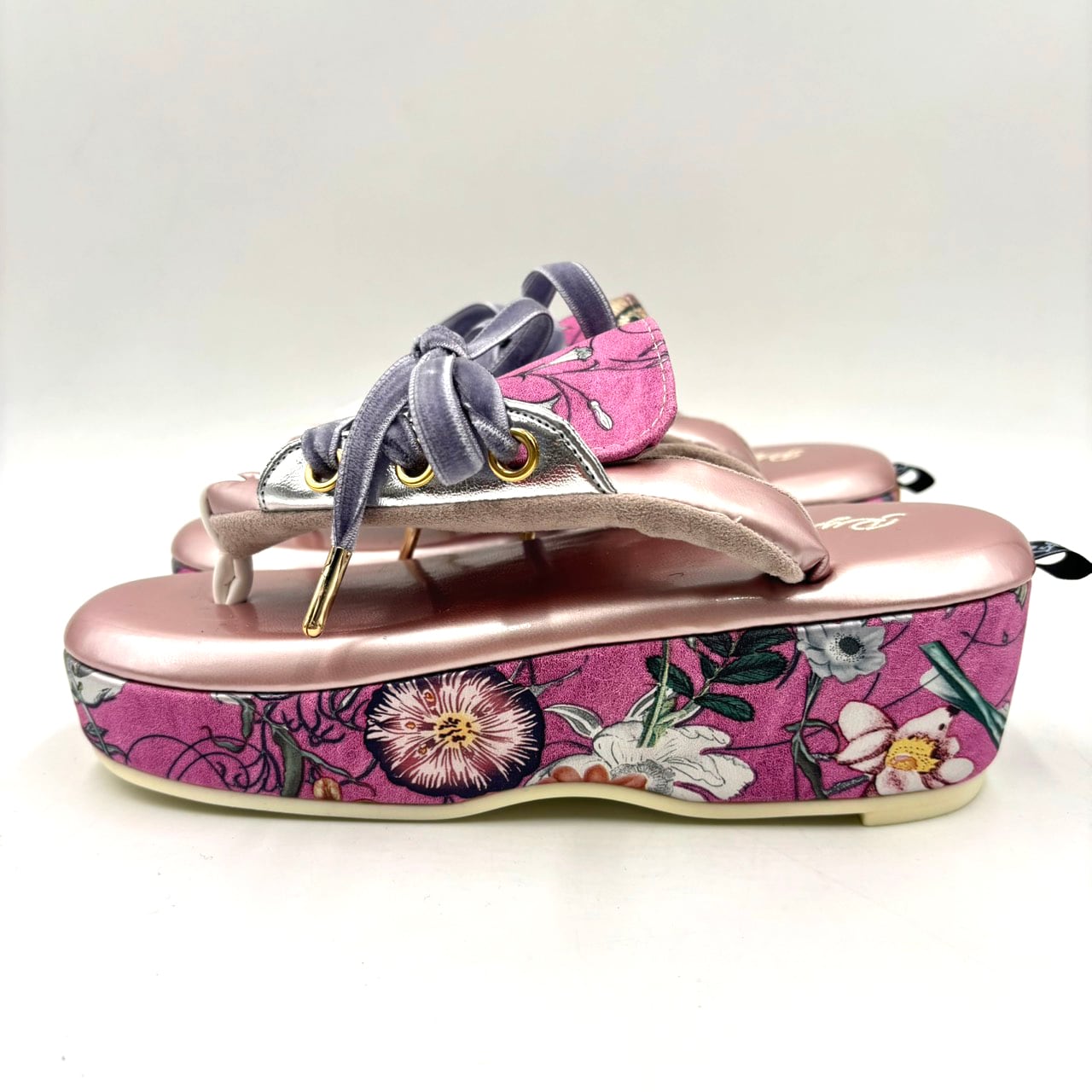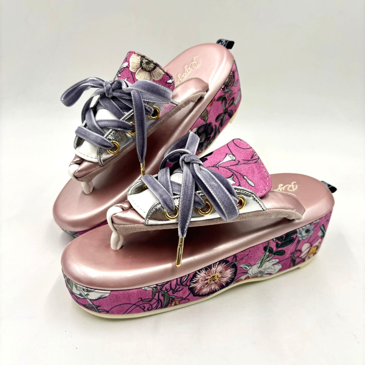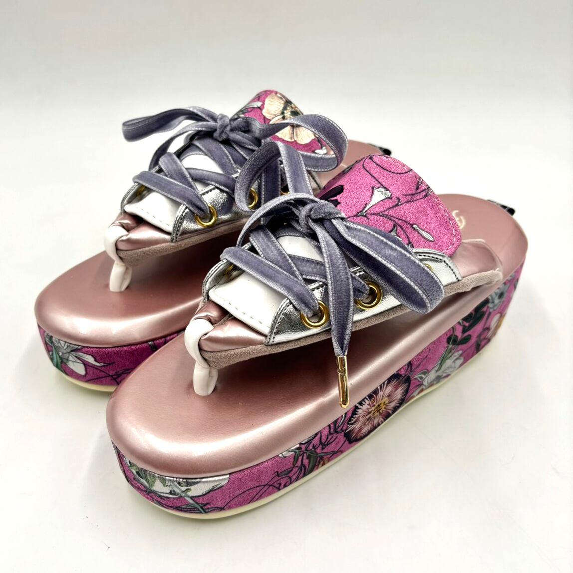 花柄の台にスニーカー風デザインを組み合わせた「流神 -Ryujin-」のスニーカー草履。