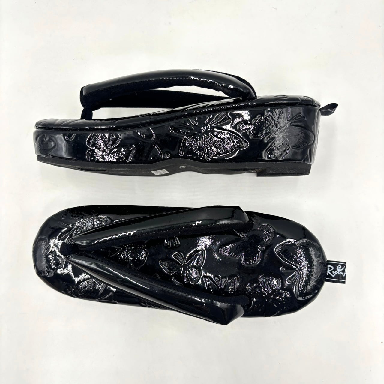 天生地も巻もバタフライ柄のオールレザーで高級感がある草履。